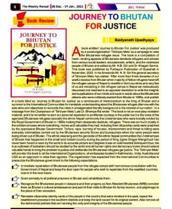 “राजतन्त्र तानाशाहको अखाडा हो । यो अधिनायकवाद र सामन्ती सोचमा स्थापित राजनीतिक सिद्धान्त हो । यो एउटा व्यक्तिदेखि बढ्दै गएर यसले परिवार, जाति, समाज, देश र विश्वमा आफ्नो कुुटनीतिक दाउपेच फैलाउने गर्दछ । त्यसैगरी भुटानको राजतन्त्र र राजाद्वारा स्थापित प्रजातन्त्र दुवै एकै हुन् । एउटा कुटनीतिक चाल हो र यो वाङ्चुक राजपरिवारको सुरक्षा कवच मात्र हो । भुुटानी राजतन्त्र देशमा असल प्रतिफल ल्याउने र मानव–जगतलाई मनपर्ने अनुशासित सिद्धान्त होइन ।